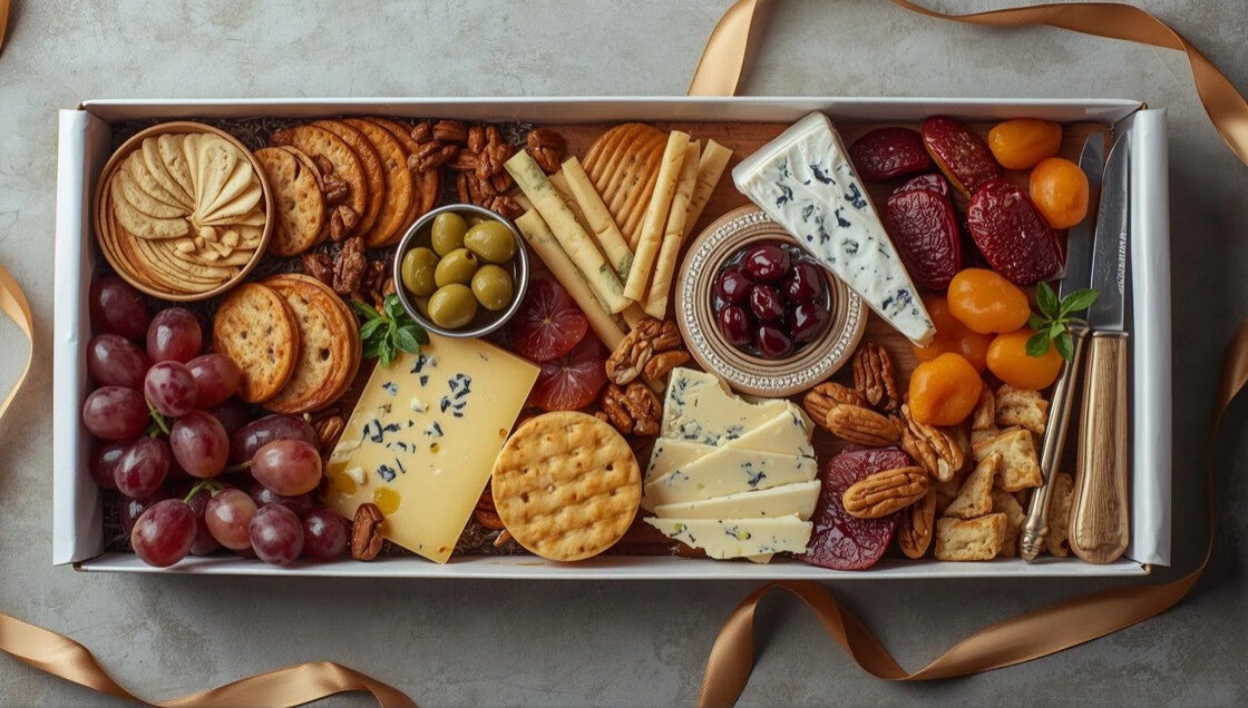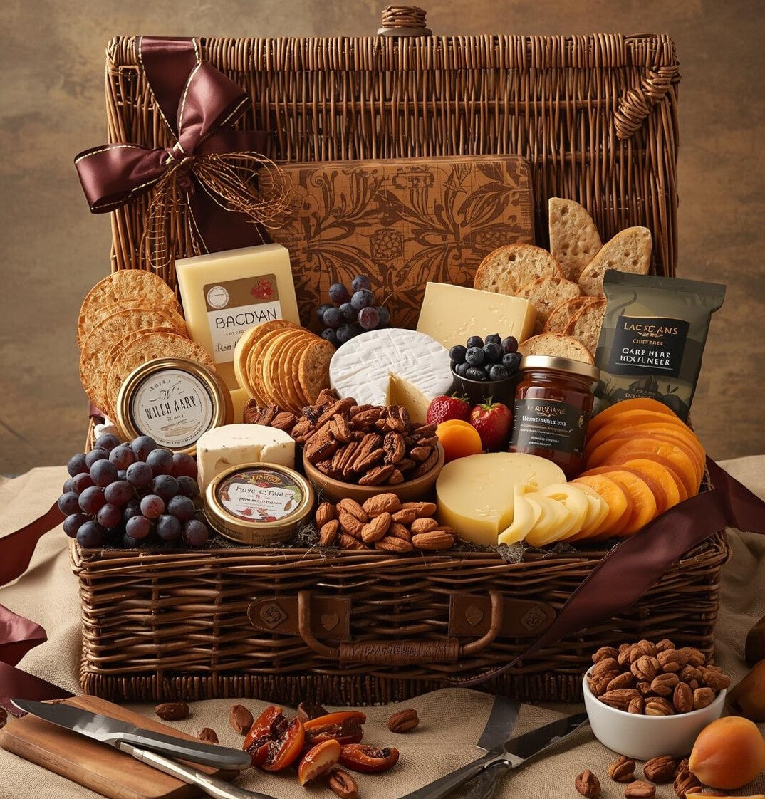 A thoughtfully handpicked cheese platter gift set is the perfect way to delight any cheese lover or mark a special occasion elegantly packed with ribbon in a box or in a basket, complete with a complimentary card.